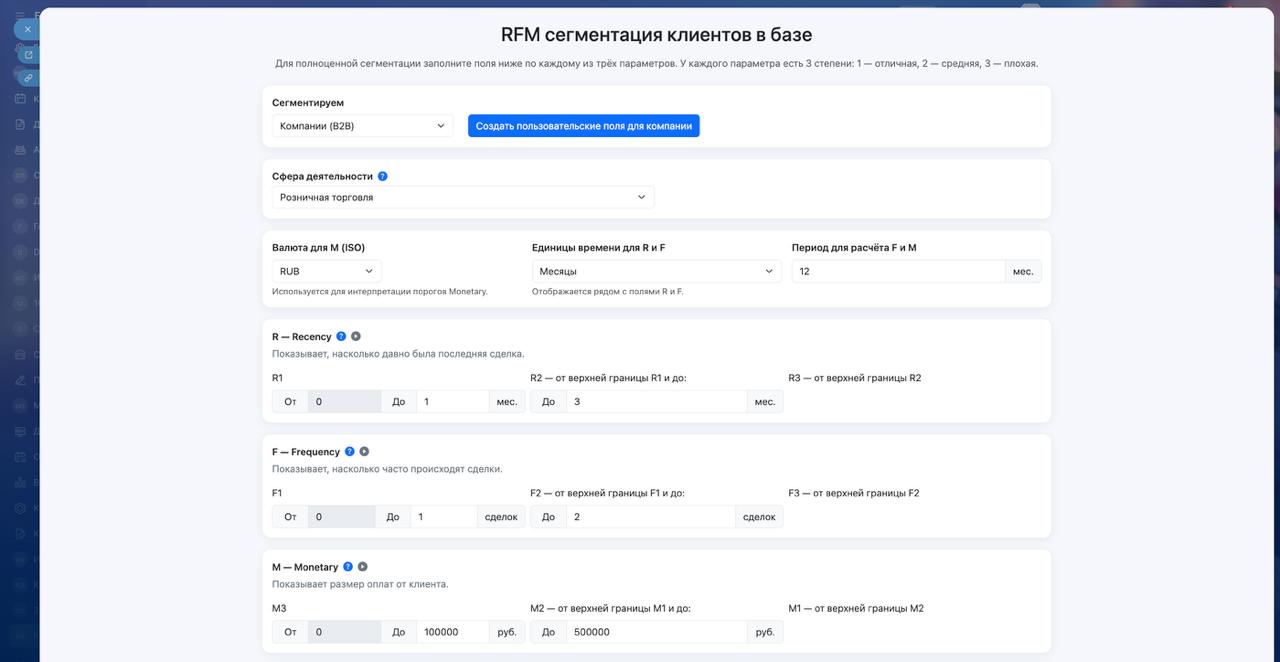 — это инструмент для сегментации клиентской базы по модели RFM (Recency, Frequency, Monetary), встроенный в вашу CRM.